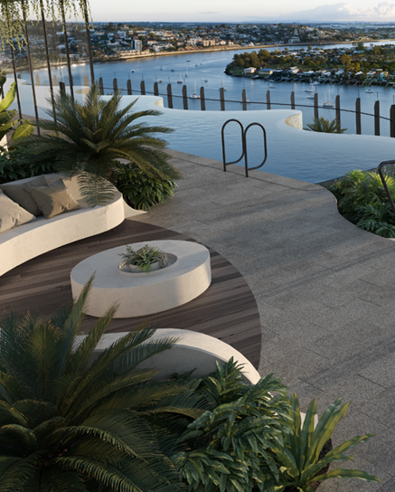 On the rooftop, Quay’s proposed 25 metre infinity edge pool disappears out to the river and the views beyond.