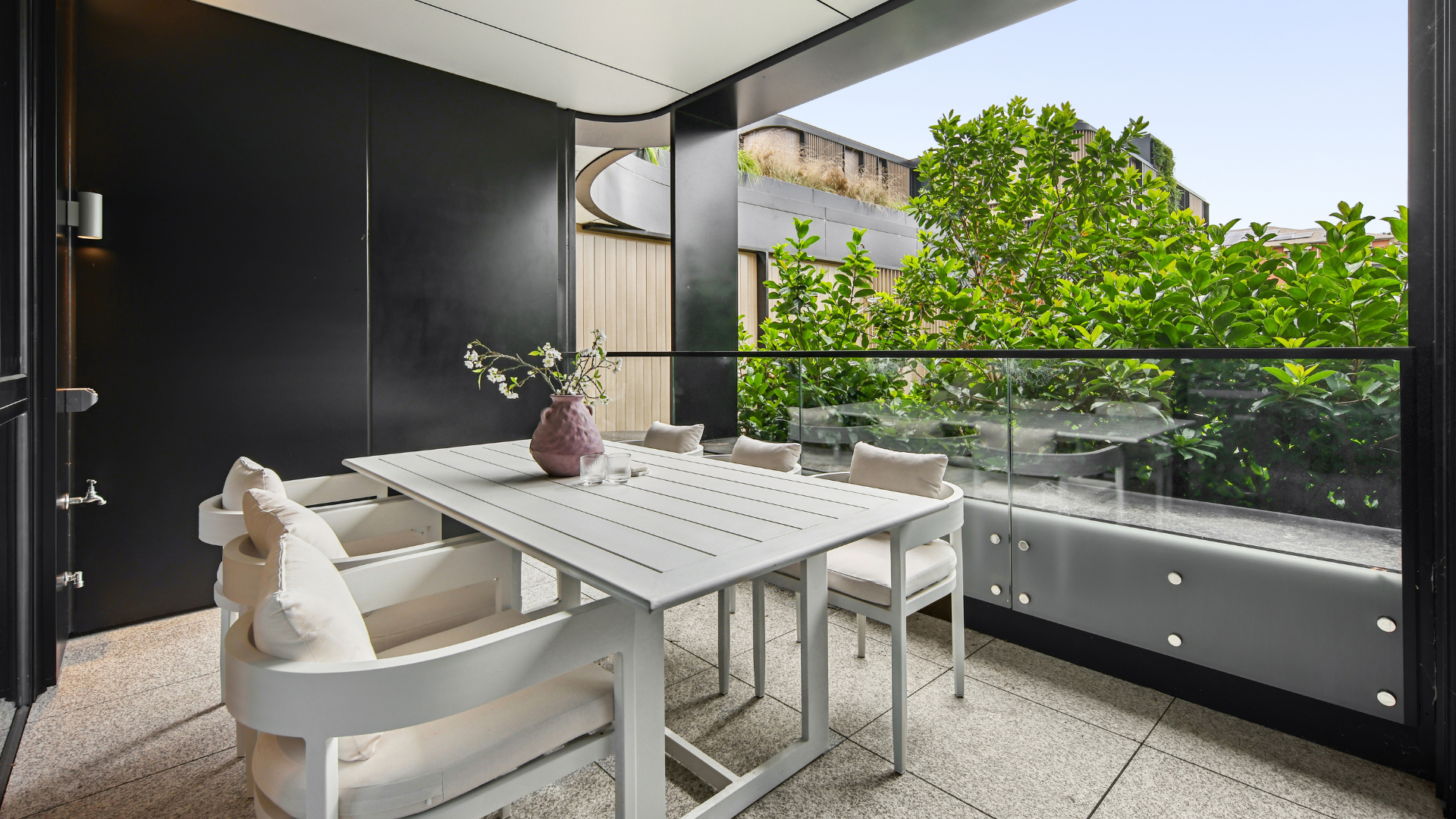 This two bedroom residence is 99m² with generous 10m² balcony adorned with planter boxes and greenery.