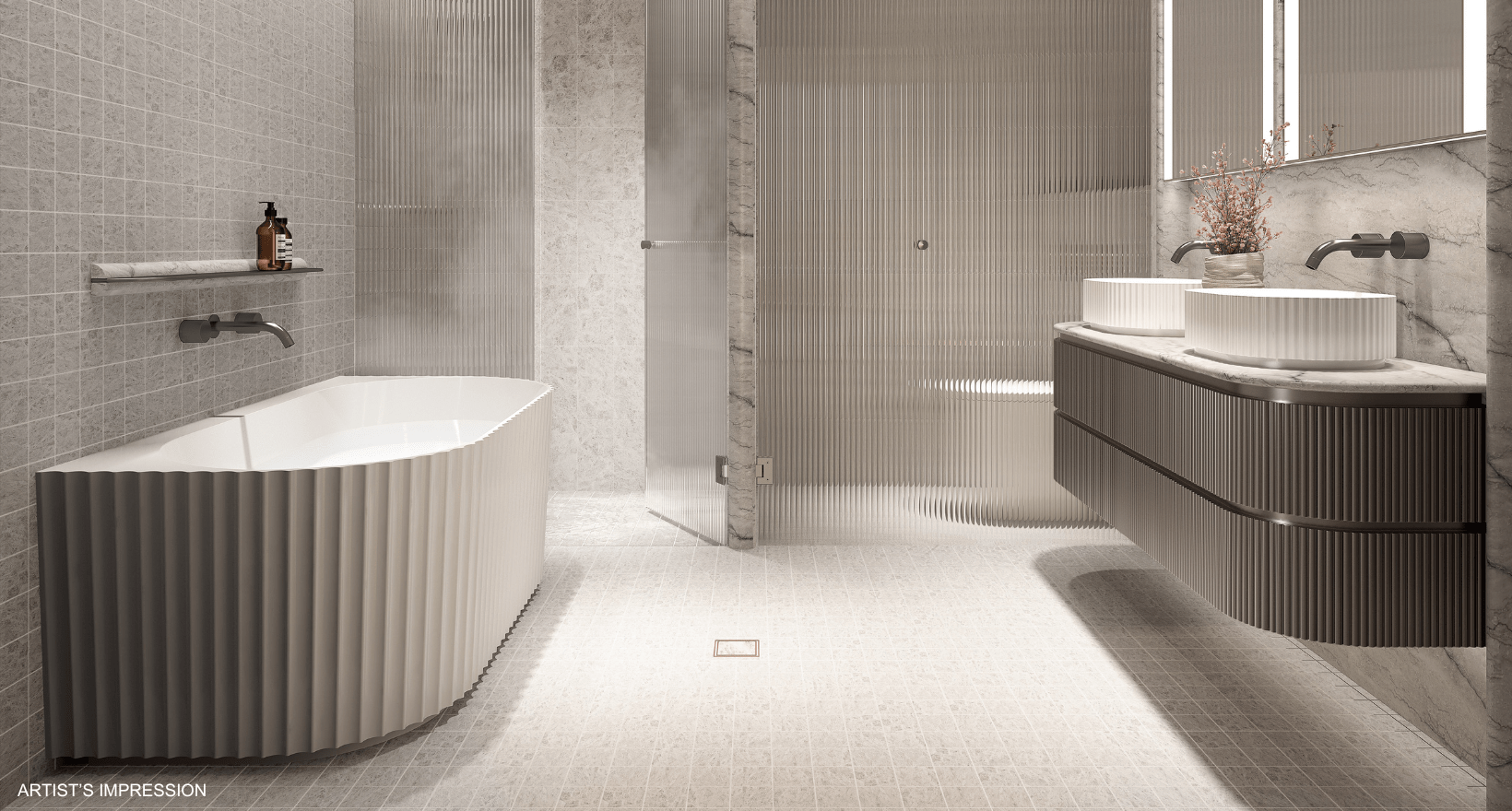 Artist's impression was produced prior to planning approval, statutory approval and commencement of construction and is subject to change. The information, image and artists' impression depicting interiors and exteriors are intended only as a guide and are not to be relied on as representative of the final product or the apartment type advertised. Architecture is indicative only and subject to change. Internal and external views are indicative only and subject to change. Photography correct as at October 2022 and does not represent any future development that may occur in the area. The information provided herein is believed to be correct as at April 2025.