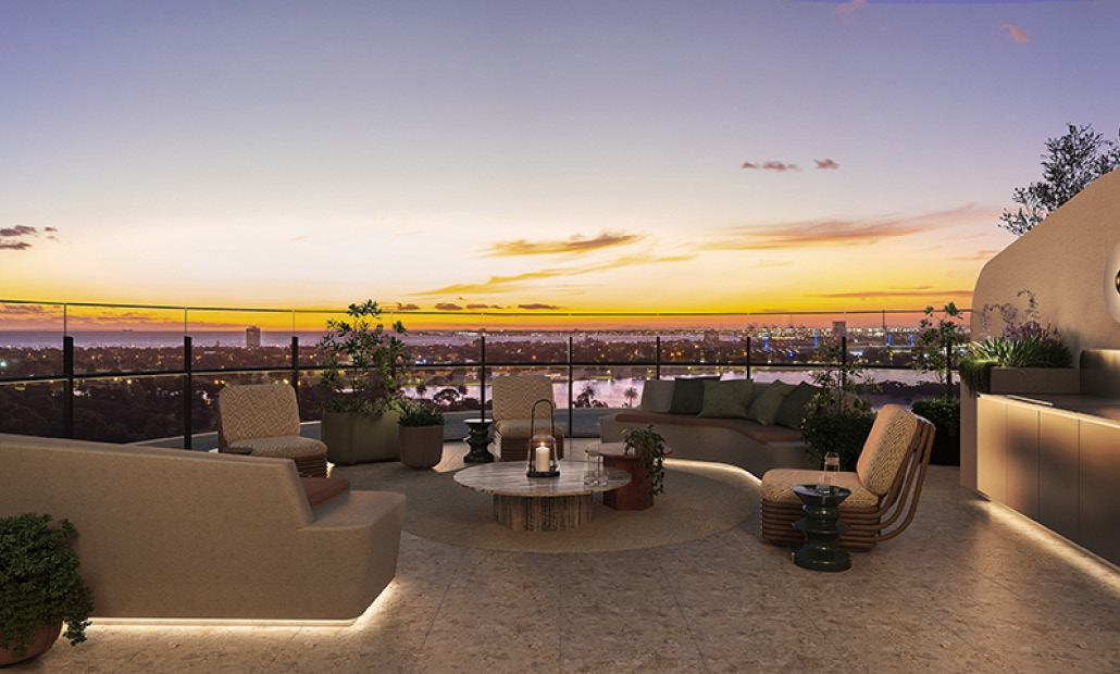 Artist's impression was produced prior to planning approval, statutory approval and commencement of construction and is subject to change. The information, image and artists' impression depicting interiors and exteriors are intended only as a guide and are not to be relied on as representative of the final product or the apartment type advertised. Architecture is indicative only and subject to change. Internal and external views are indicative only and subject to change. Photography correct as at October 2022 and does not represent any future development that may occur in the area. The information provided herein is believed to be correct as at September 2023.