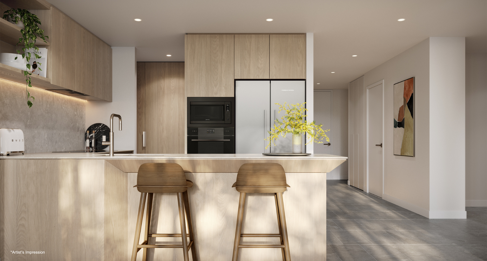 *Artist's impression as at June 2025 was produced prior to receipt of all final planning approvals and prior to commencement of construction and is subject to change. The information, image and artist's impression depicting exteriors and interiors are intended only as a guide and are not to be relied on as a representative of the final product. Furnishings are not included. Landscaping and other aspects of the project may differ from this image. The view depicted is not to be taken as a representation of the final view.