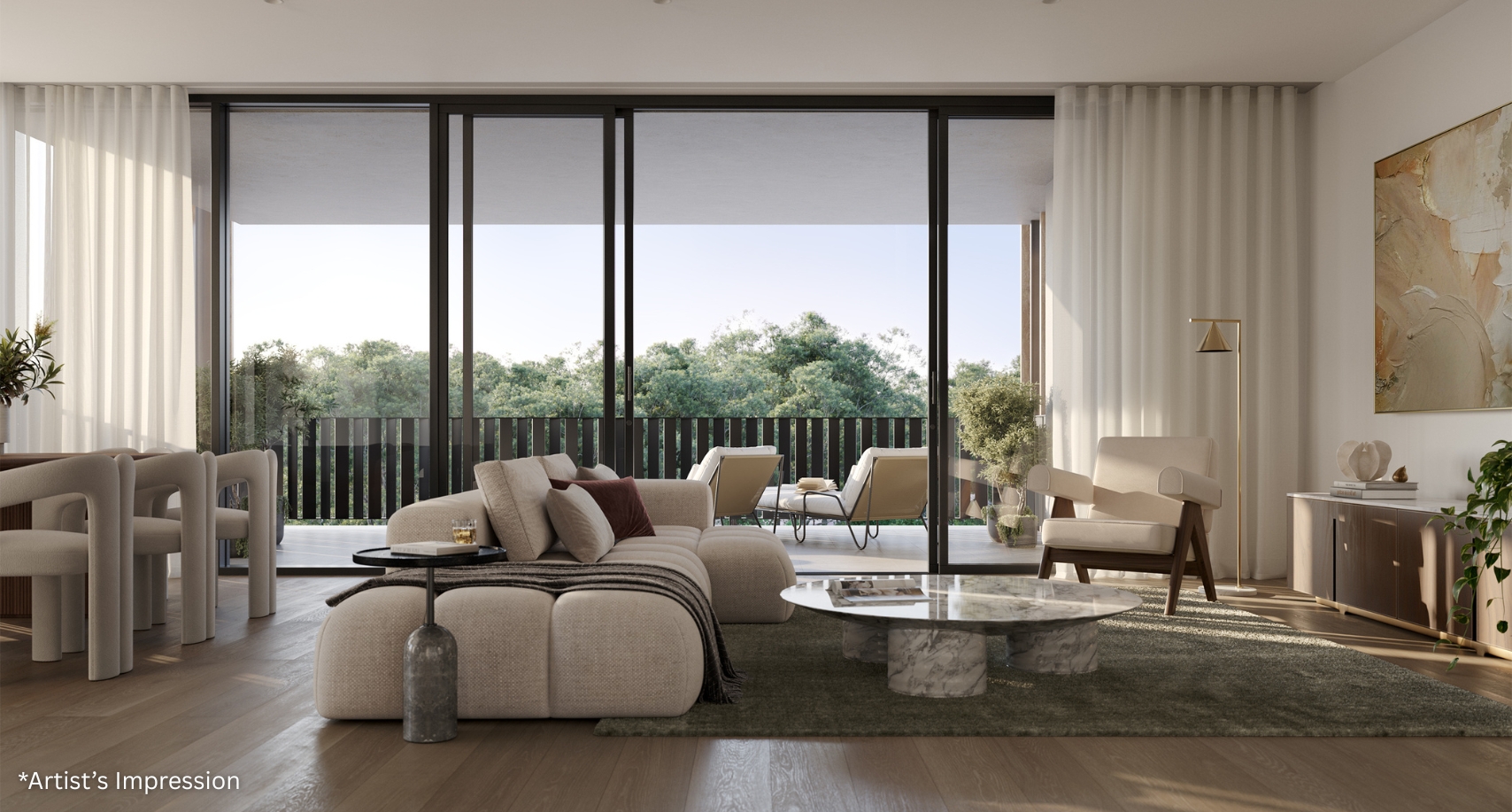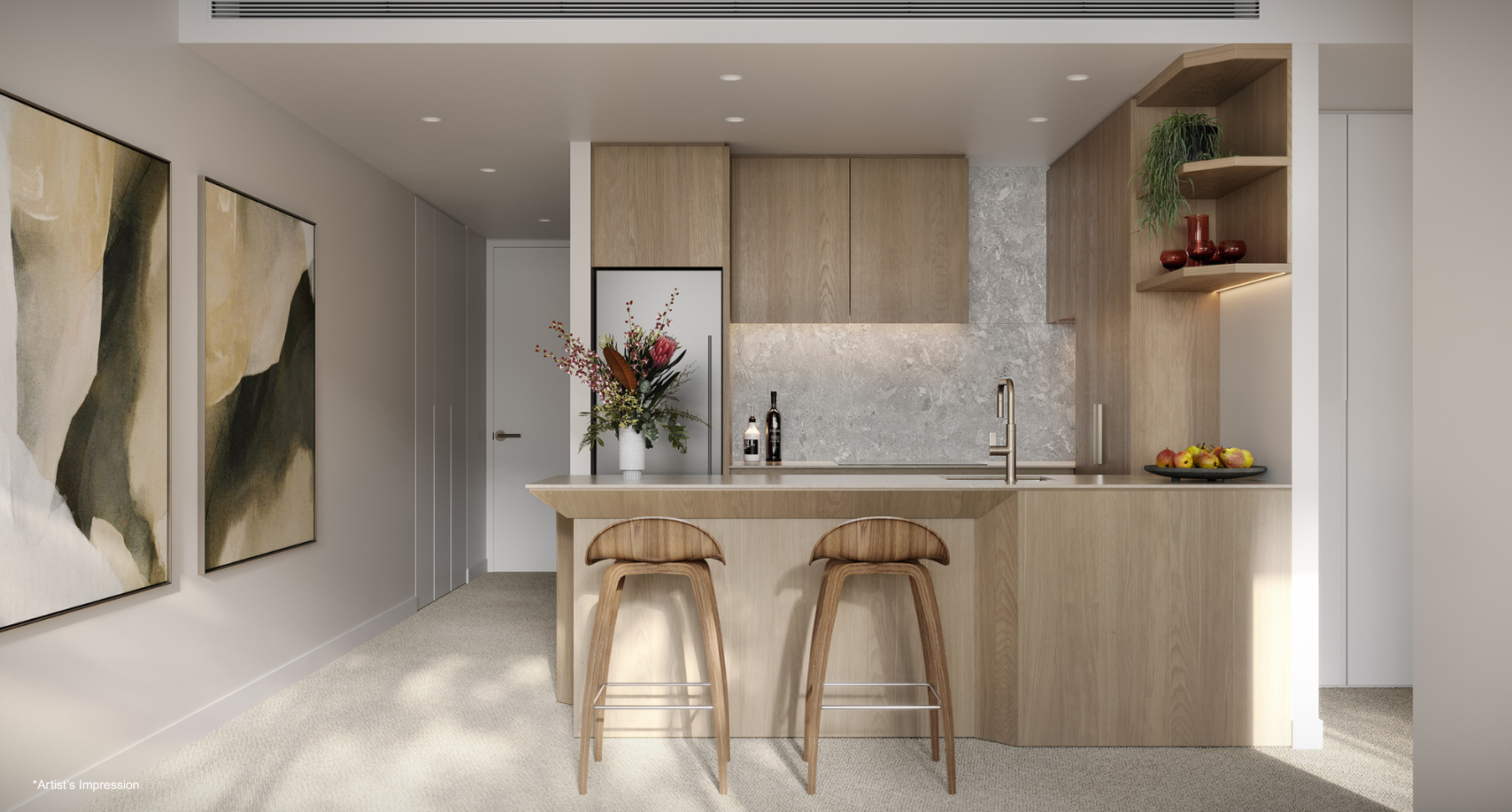 *Artist's impression as at June 2025 was produced prior to receipt of all final planning approvals and prior to commencement of construction and is subject to change. The information, image and artist's impression depicting exteriors and interiors are intended only as a guide and are not to be relied on as a representative of the final product. Furnishings are not included. Landscaping and other aspects of the project may differ from this image. The view depicted is not to be taken as a representation of the final view.