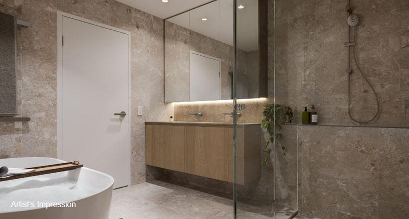 *Artist's impression as at 28.03.2024 was produced prior to receipt of all final planning approvals and prior to commencement of construction and is subject to change. The information, image and artist's impression depicting exteriors and interiors are intended only as a guide and are not to be relied on as a representative of the final product. Furnishings are not included. Landscaping and other aspects of the project may differ from this image. The view depicted is not to be taken as a representation of the final view.