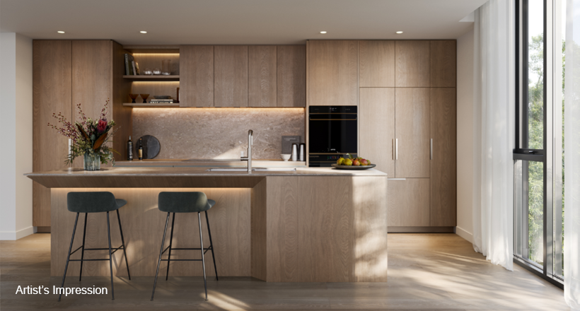 *Artist's impression as at 28.03.2024 was produced prior to receipt of all final planning approvals and prior to commencement of construction and is subject to change. The information, image and artist's impression depicting exteriors and interiors are intended only as a guide and are not to be relied on as a representative of the final product. Furnishings are not included. Landscaping and other aspects of the project may differ from this image. The view depicted is not to be taken as a representation of the final view.