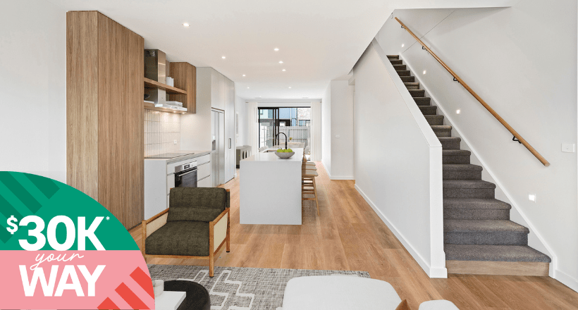 The imagery may not directly reflect the townhome for sale, and are intended to be indicative of general quality of finish within each townhome at The Fabric by Mirvac. Purchasers must make and rely on their own enquiries and refer to the contract of sale.