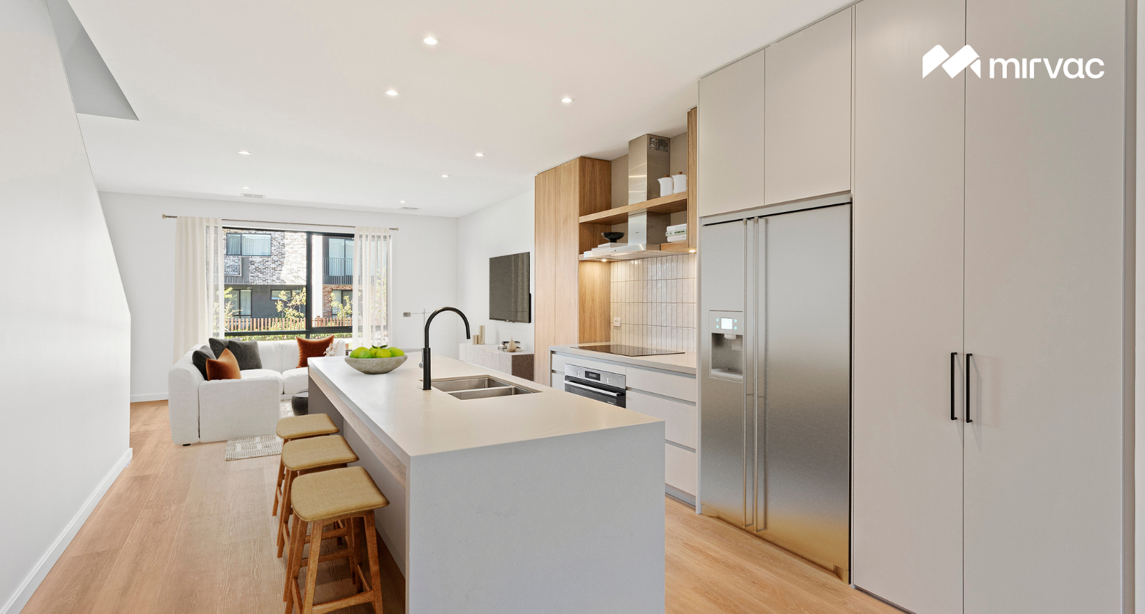 Image is indicative only. Benchtop material: On 13 December 2023 the Commonwealth and State WHS Ministers announced an intention to ban all engineered stone nationally with effect from 1 July 2024. Alternatives to engineered stone which meet Mirvac’s required quality and design standards are currently being investigated. As such the benchtop material has yet to be determined and once determined will be different from that shown in the render.