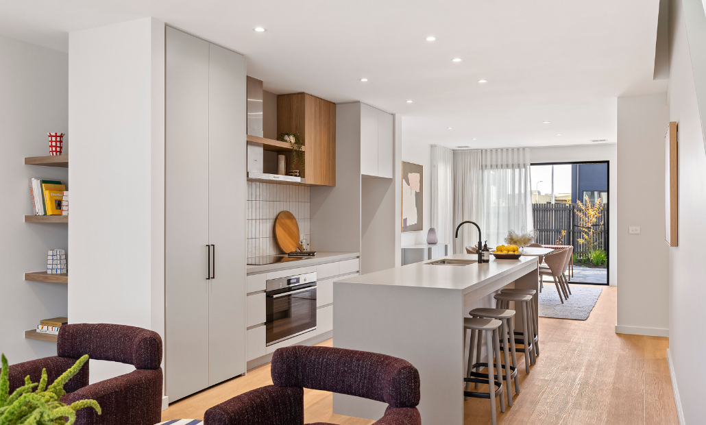 The imagery may not directly reflect the townhome for sale, and are intended to be indicative of general quality of finish within each townhome at The Fabric by Mirvac. Purchasers must make and rely on their own enquiries and refer to the contract of sale.