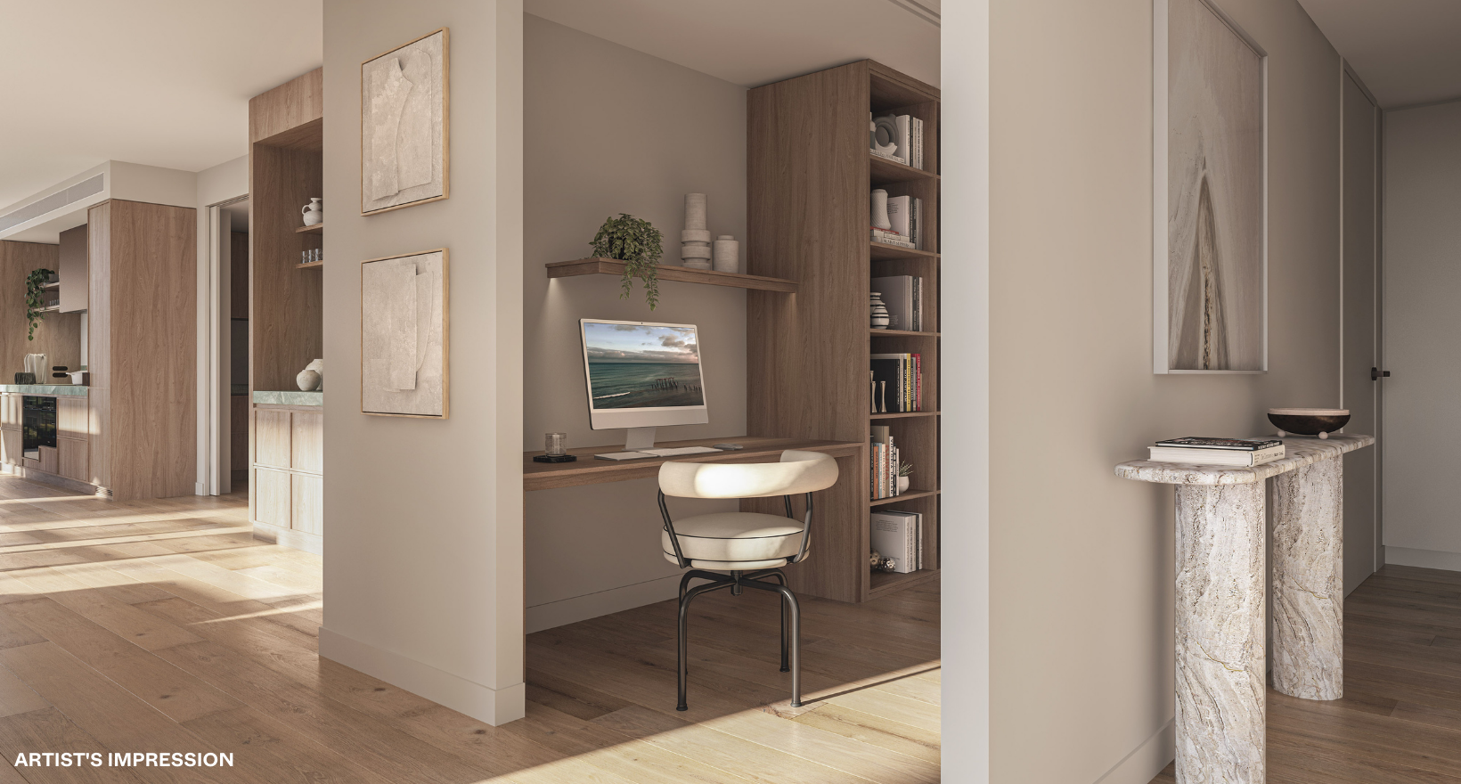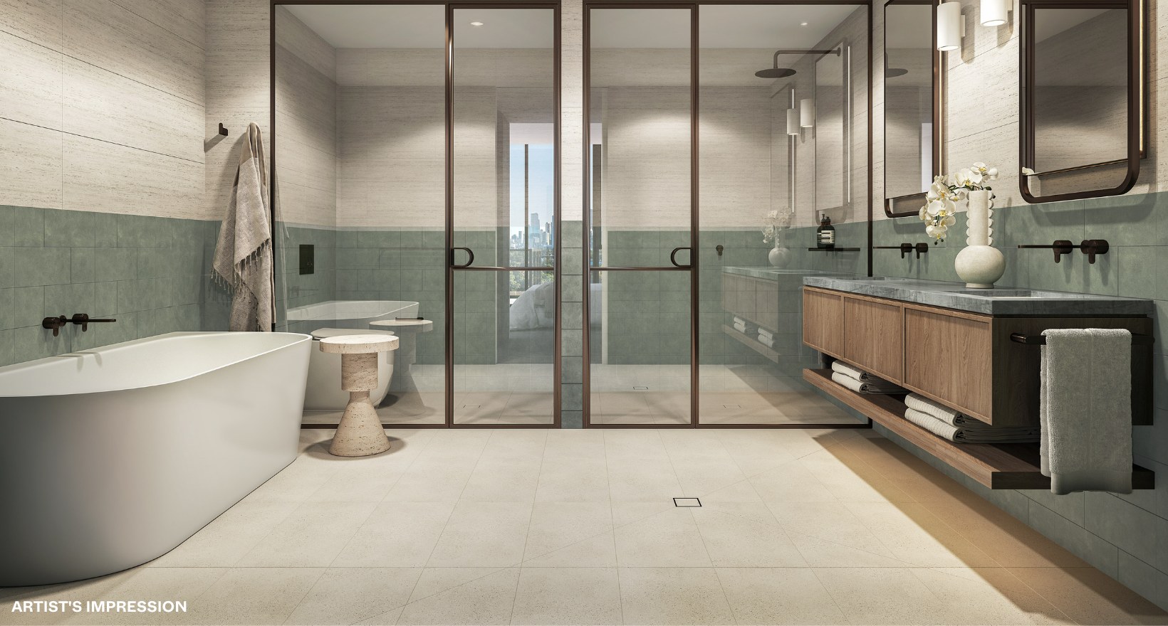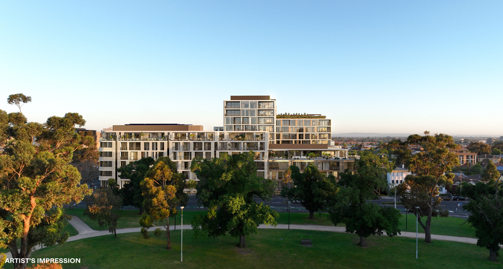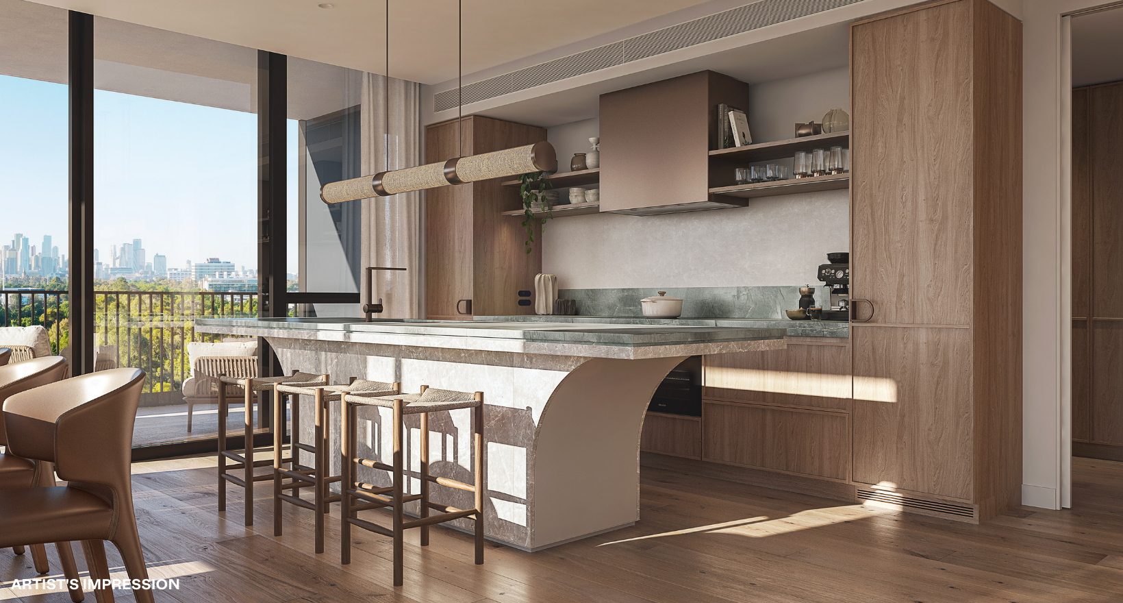 *Artist's impression was produced prior to planning approval, statutory approval and commencement of construction and is subject to change. The information, image and artists' impression depicting interiors and exteriors are intended only as a guide and are not to be relied on as representative of the final product or the apartment type advertised. Architecture is indicative only and subject to change. Internal and external views are indicative only and subject to change. Photography correct as at time of publishing and does not represent any future development that may occur in the area. The information provided herein is believed to be correct as at October 2023.