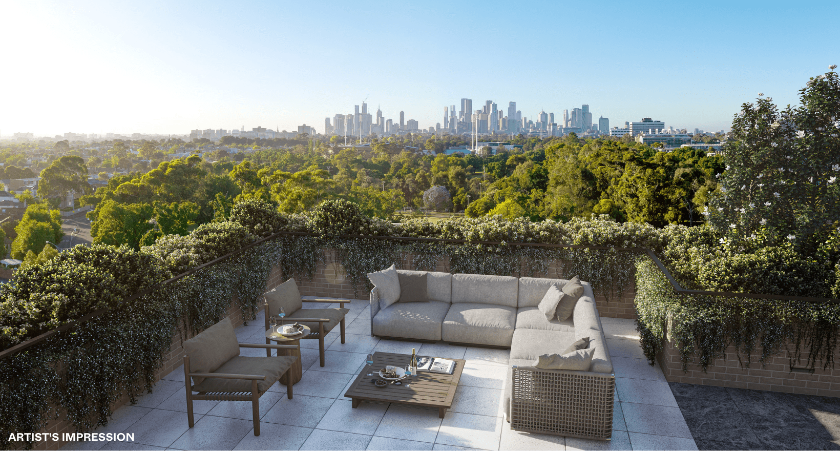 • Rooftop terrace with views over Princes Park, the Melbourne city skyline and beyond