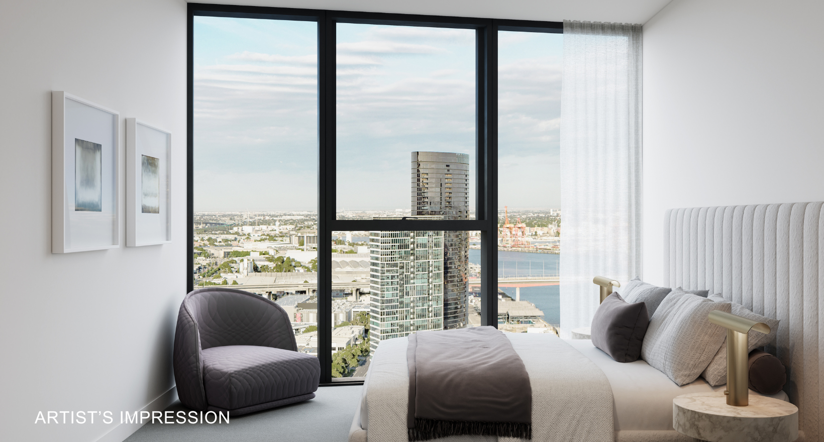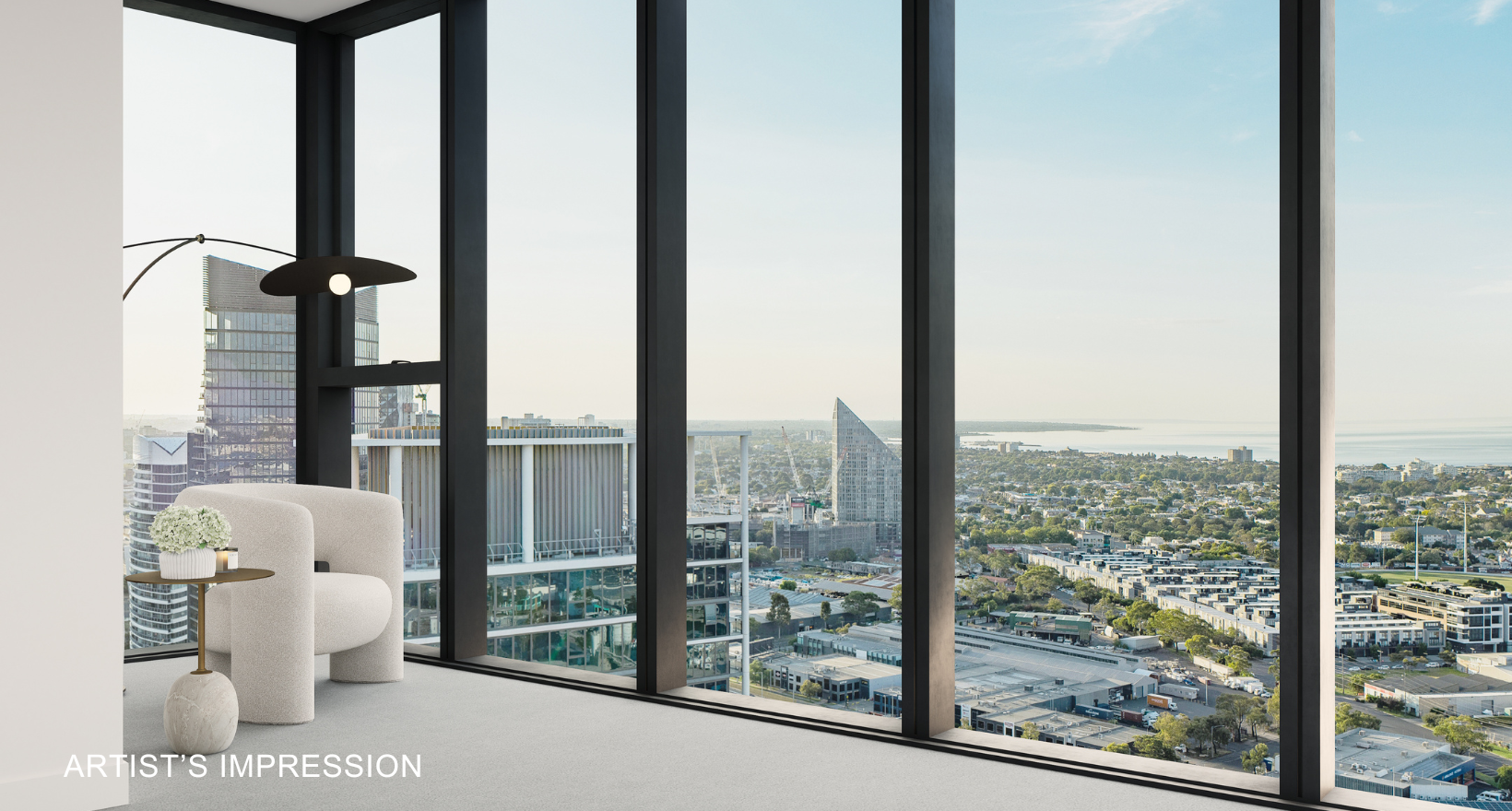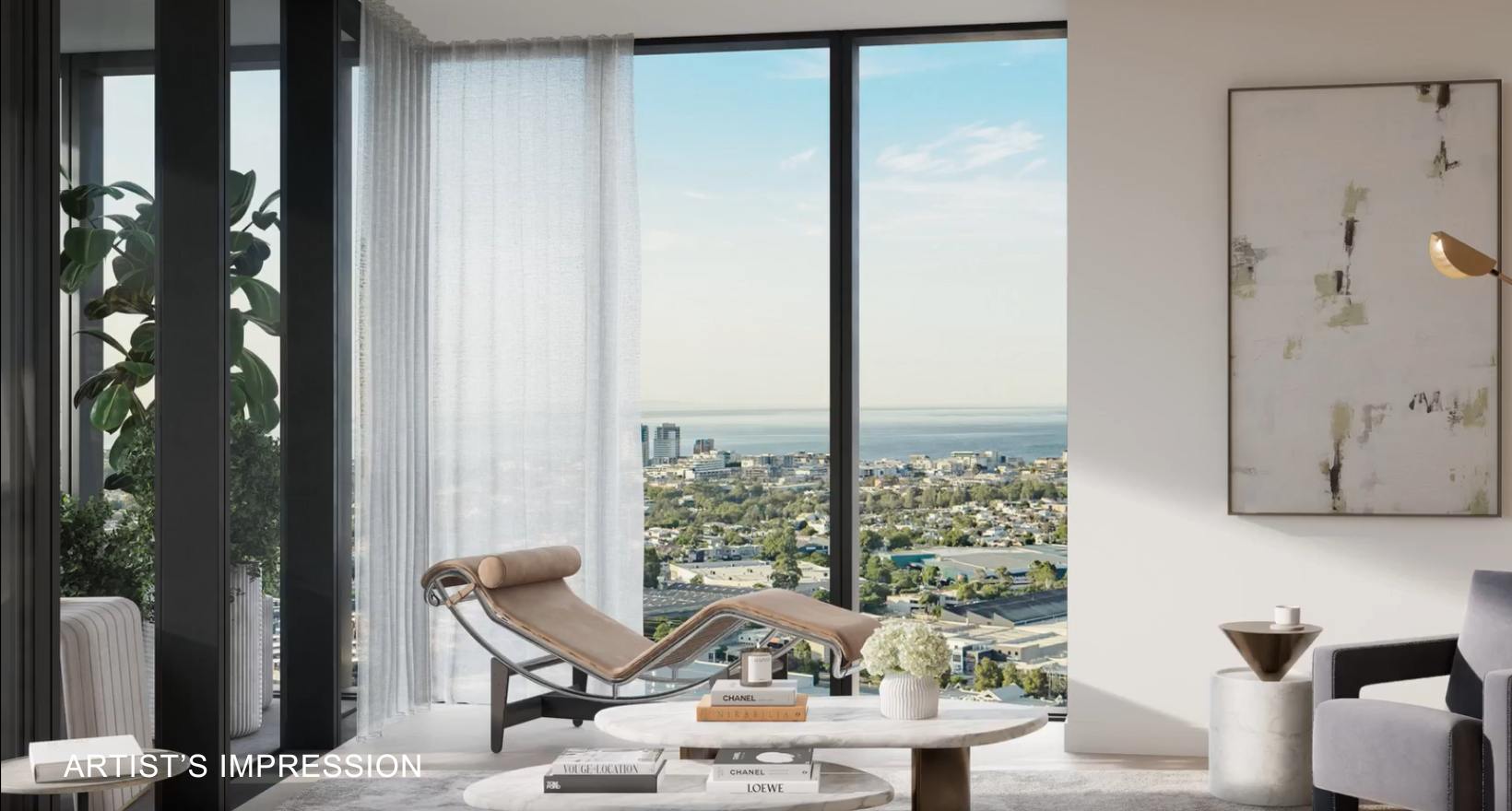 Artist's impression was produced prior to planning approval, statutory approval and commencement of construction and is subject to change. The information, image and artists' impression depicting interiors and exteriors are intended only as a guide and are not to be relied on as representative of the final product or the apartment type advertised. Architecture is indicative only and subject to change. Internal and external views are indicative only and subject to change. Furnishings are not included. Photography correct as at August 2022 and does not represent any future development that may occur in the area. The information provided herein is believed to be correct as at March 2025.