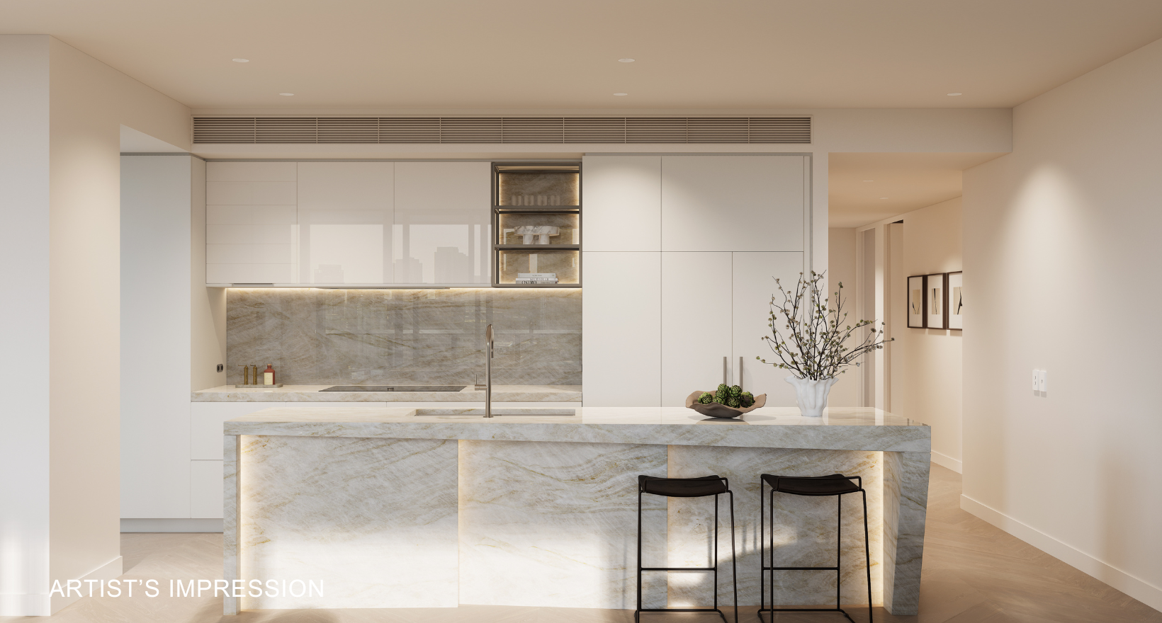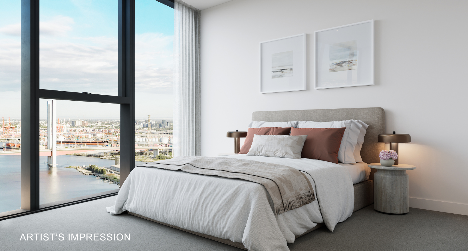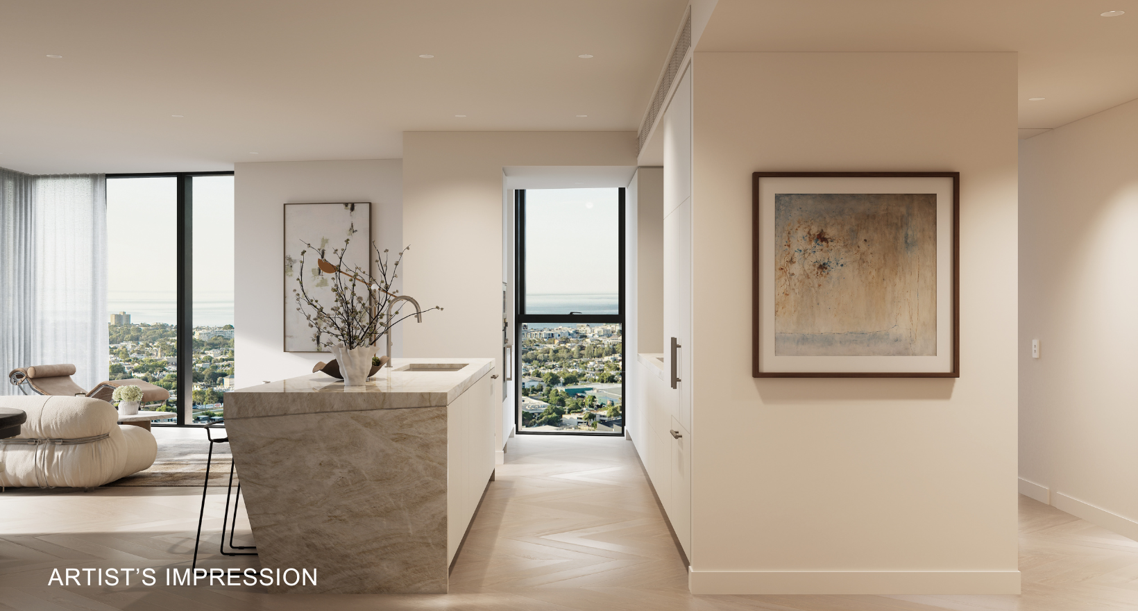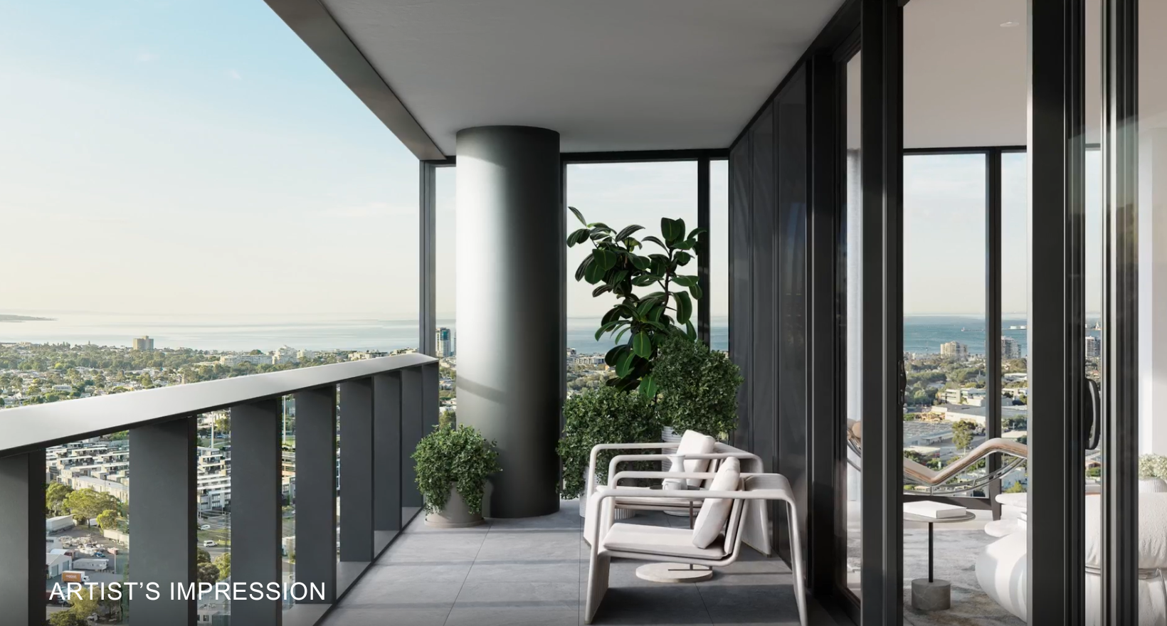 Artist's impression was produced prior to planning approval, statutory approval and commencement of construction and is subject to change. The information, image and artists' impression depicting interiors and exteriors are intended only as a guide and are not to be relied on as representative of the final product or the apartment type advertised. Architecture is indicative only and subject to change. Internal and external views are indicative only and subject to change. Furnishings are not included. Photography correct as at August 2022 and does not represent any future development that may occur in the area. The information provided herein is believed to be correct as at March 2025.