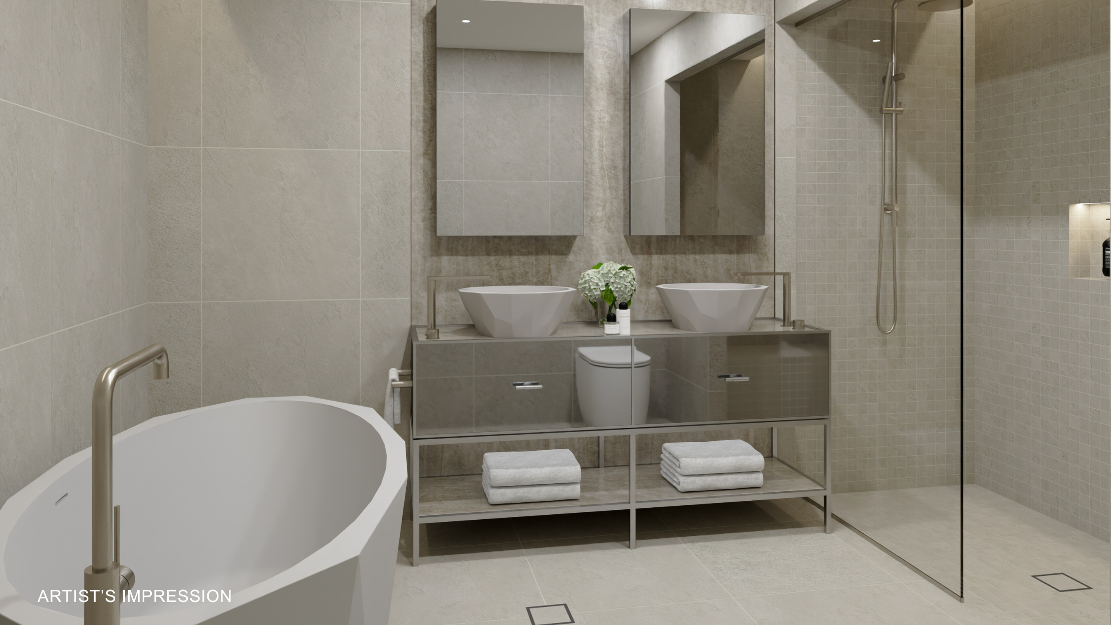 Artist's impression was produced prior to planning approval, statutory approval and commencement of construction and is subject to change. The information, image and artists' impression depicting interiors and exteriors are intended only as a guide and are not to be relied on as representative of the final product or the apartment type advertised. Architecture is indicative only and subject to change. Internal and external views are indicative only and subject to change. Furnishings are not included. Photography correct as at August 2022 and does not represent any future development that may occur in the area. The information provided herein is believed to be correct as at October 2024.