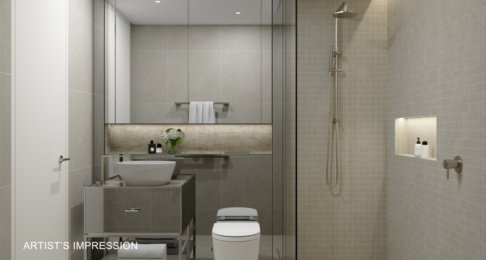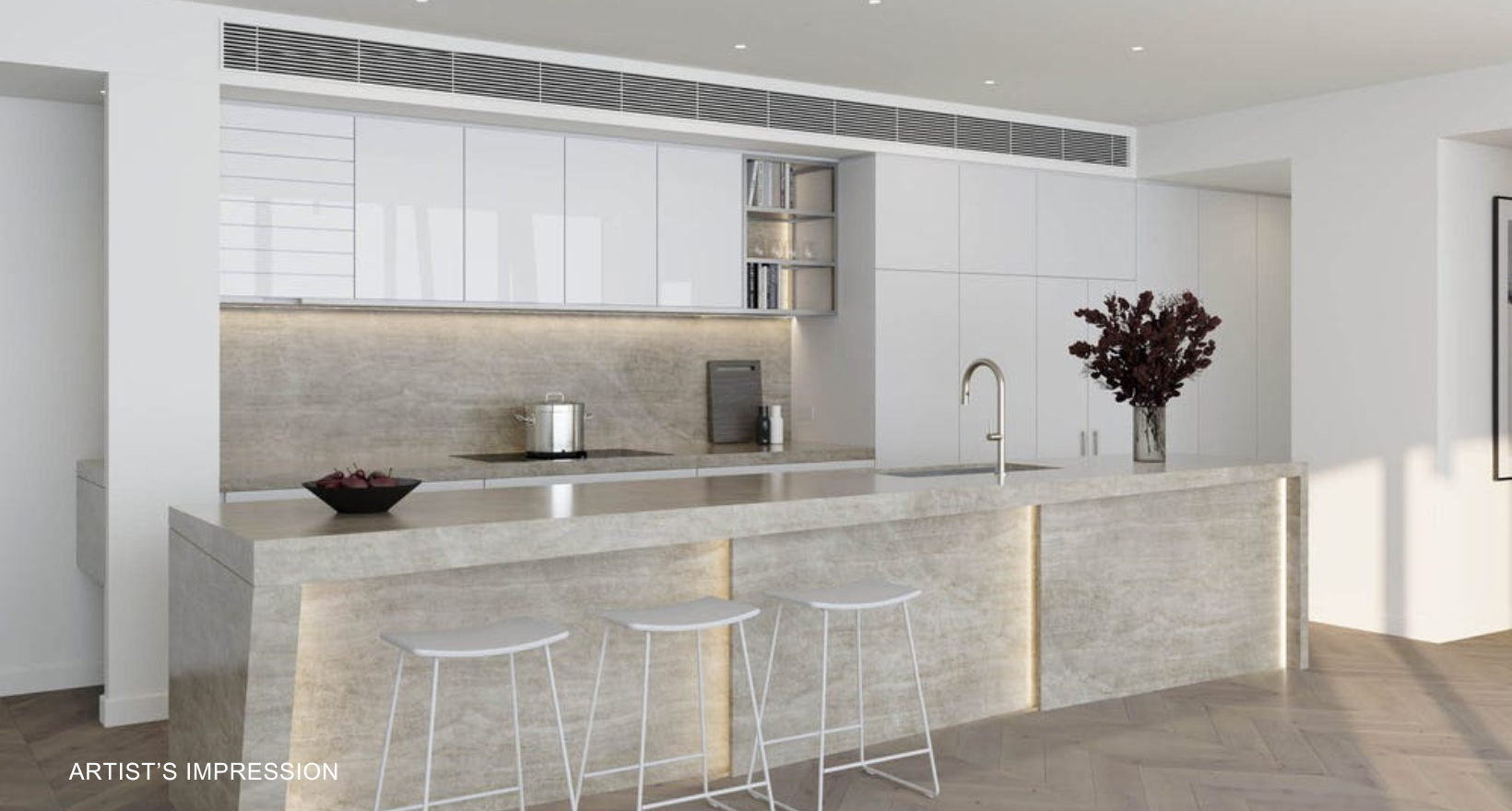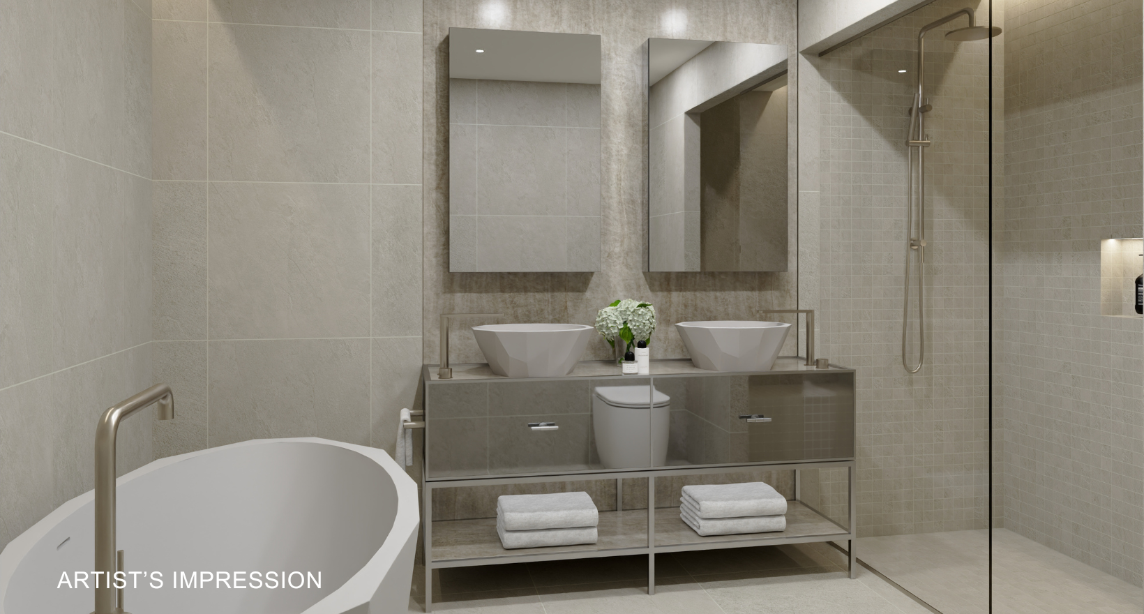 Artist's impression was produced prior to planning approval, statutory approval and commencement of construction and is subject to change. The information, image and artists' impression depicting interiors and exteriors are intended only as a guide and are not to be relied on as representative of the final product or the apartment type advertised. Architecture is indicative only and subject to change. Internal and external views are indicative only and subject to change. Furnishings are not included. Photography correct as at August 2022 and does not represent any future development that may occur in the area. The information provided herein is believed to be correct as at March 2023.