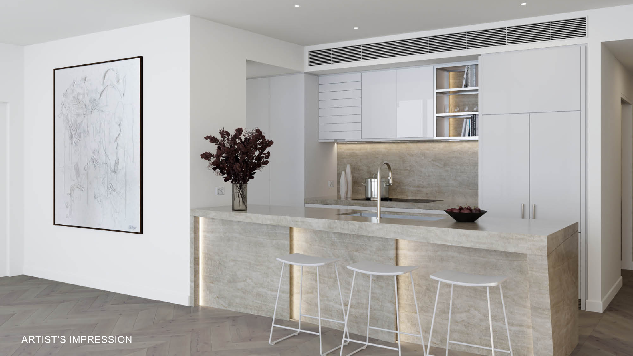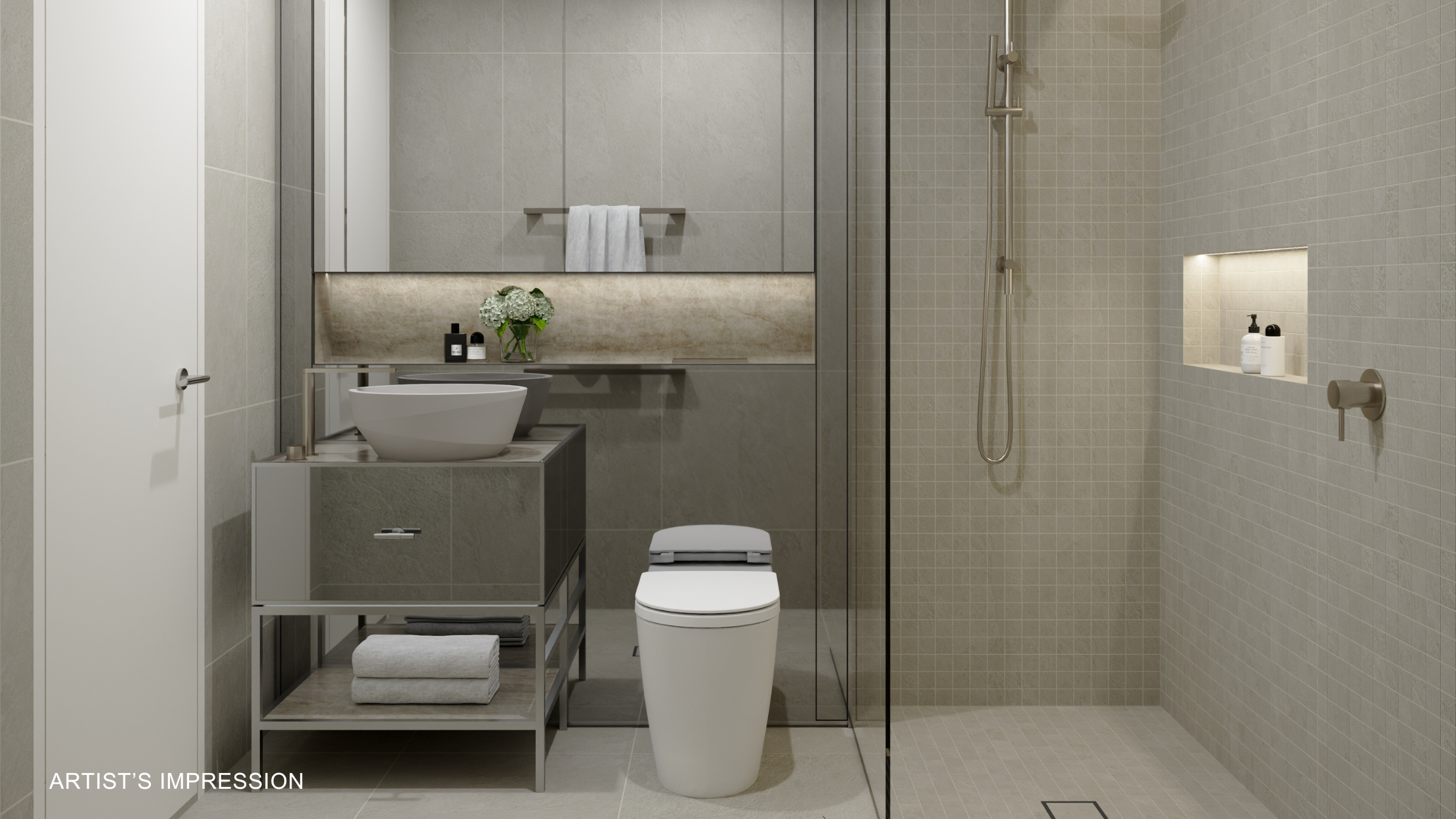 Artist's impression was produced prior to planning approval, statutory approval and commencement of construction and is subject to change. The information, image and artists' impression depicting interiors and exteriors are intended only as a guide and are not to be relied on as representative of the final product or the apartment type advertised. Architecture is indicative only and subject to change. Internal and external views are indicative only and subject to change. Furnishings are not included. Photography correct as at August 2022 and does not represent any future development that may occur in the area. The information provided herein is believed to be correct as at October 2024.