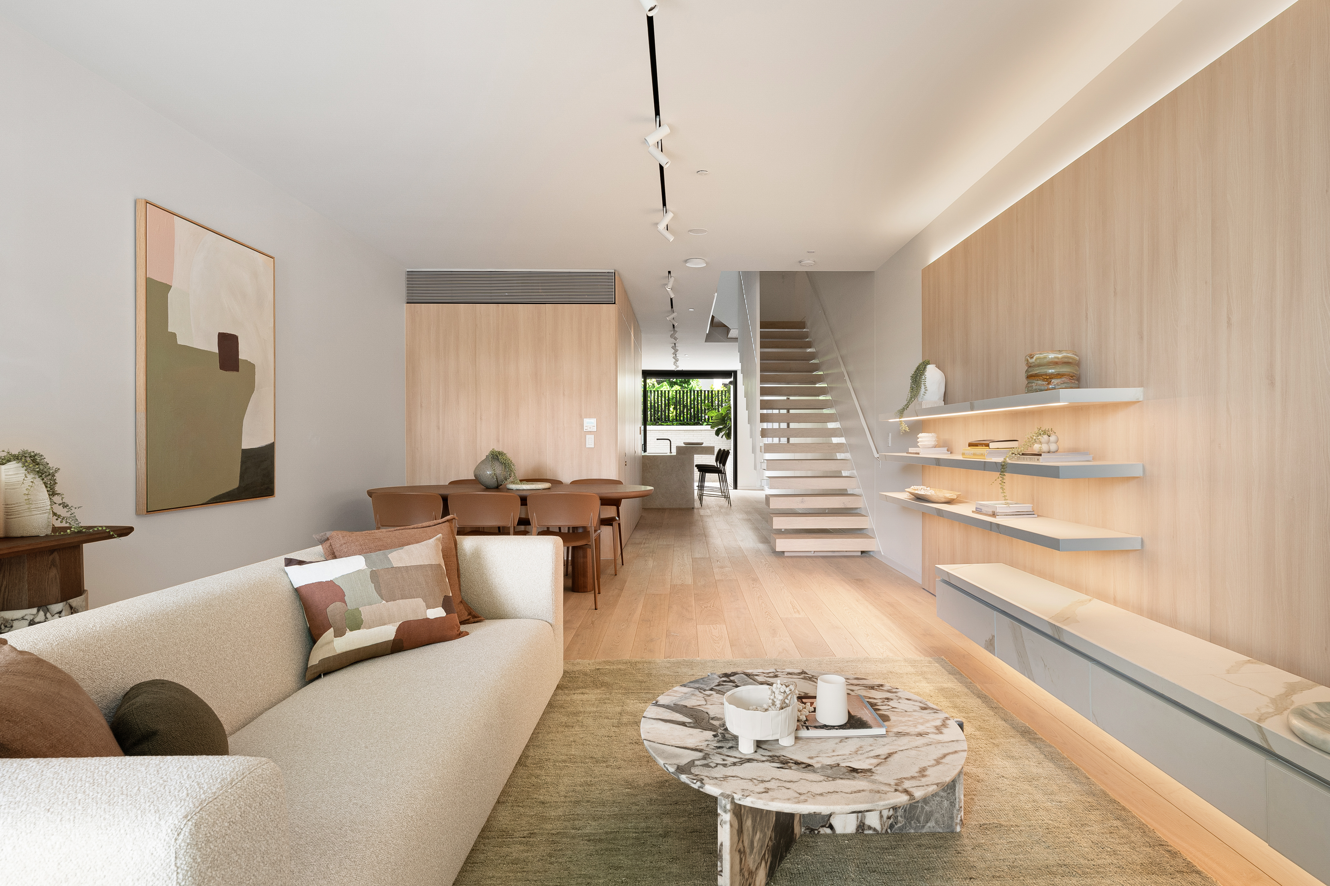 A collection of seven luxury terrace homes in Green Square, just 4km from Sydney’s CBD, designed by Smart Design Studio in collaboration with Mirvac, each spanning four levels with four bedrooms, a rumpus room, rooftop retreat, and private lift access from a secure garage.