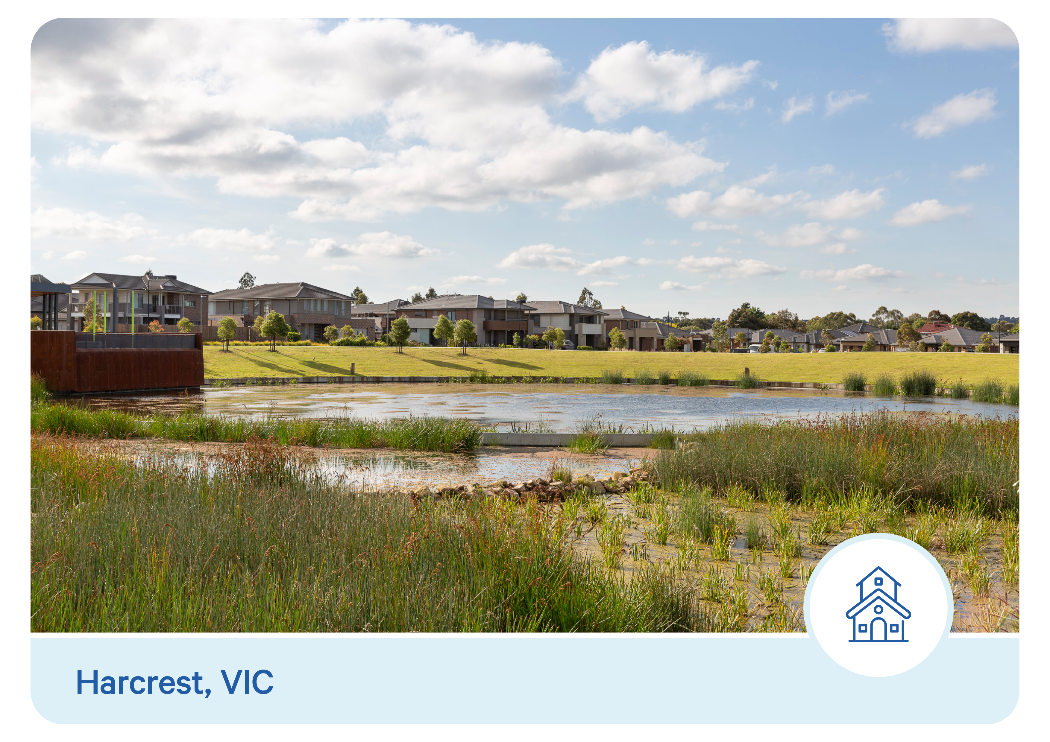 Harcrest is a 56 hectare masterplanned community in Wantirna South, which was completed by Mirvac in 2015. Early in the design phase, the project team – having seen the impacts of drought on other projects in Victoria (particularly in regard to landscaping) – identified an opportunity to integrate a highly efficient stormwater capture system to irrigate the estate’s public open spaces.