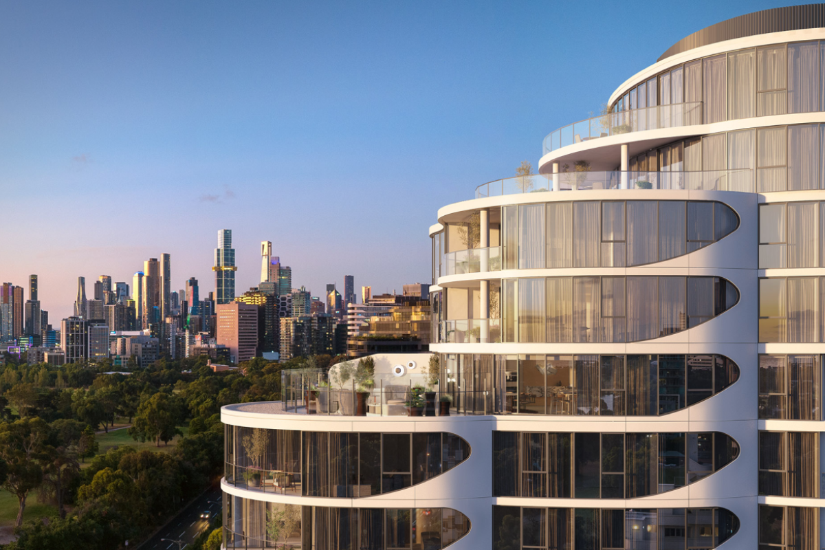 The Albertine is a boutique residential project with park frontage and CBD/park views situated in Melbourne’s City Fringe. Mirvac Design has reimagined the previously endorsed plans by Plus Architecture to include 98 luxury apartments benefitting from several resident amenities including resident's pool, spa, gym, sauna, lounge, secret garden and elevated dining/lounge 'The Elysium Room' with expansive views over Albert Park Lake. The Albertine was launched to market in mid-2023 and main construction works commenced in late-2024 following the successful completion of the four-level basement.