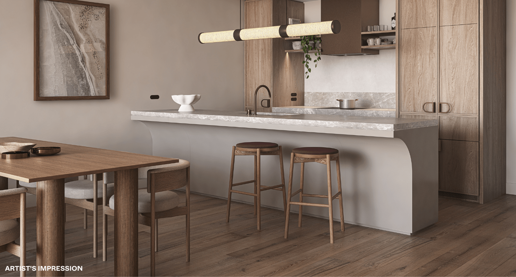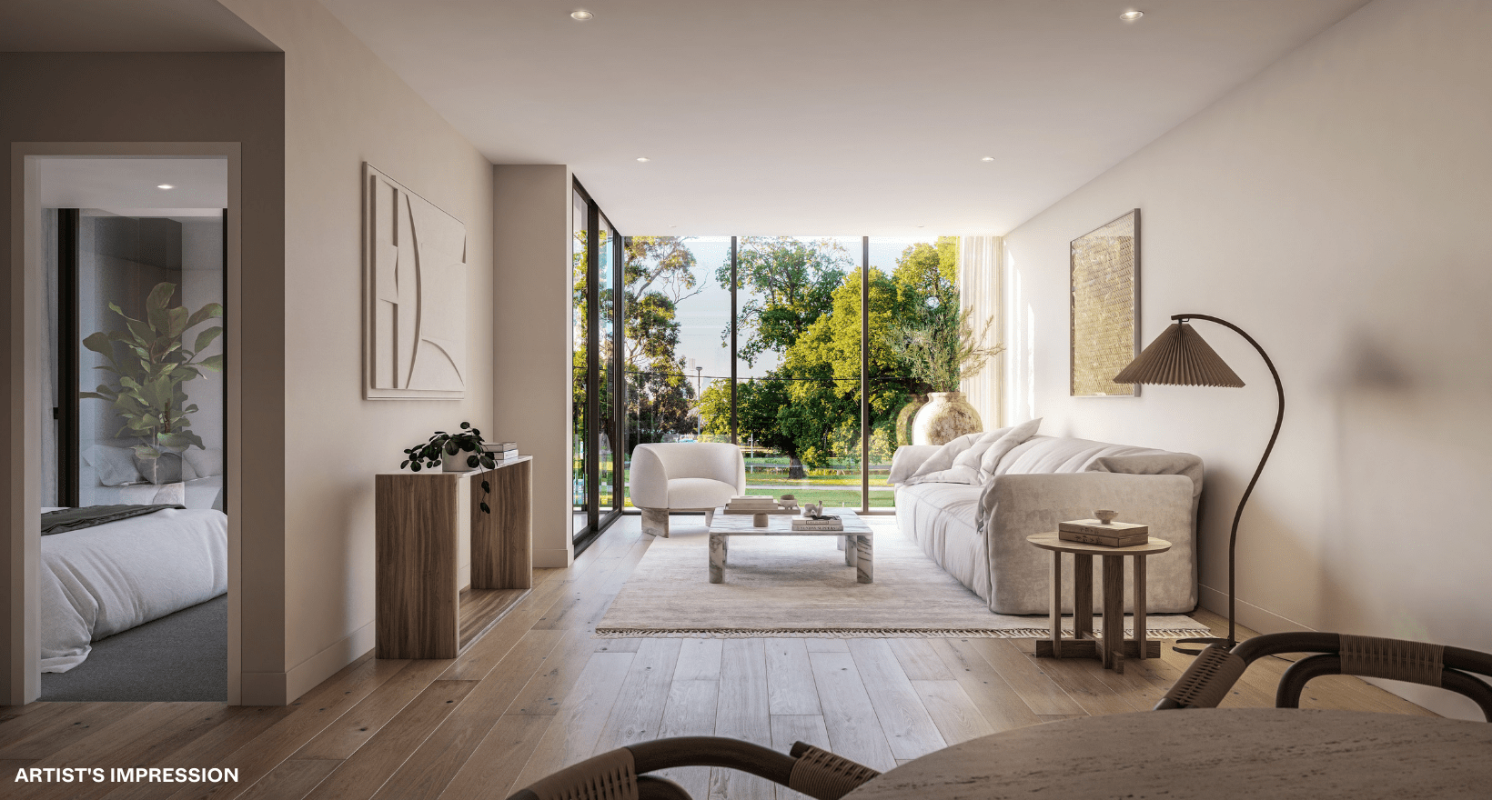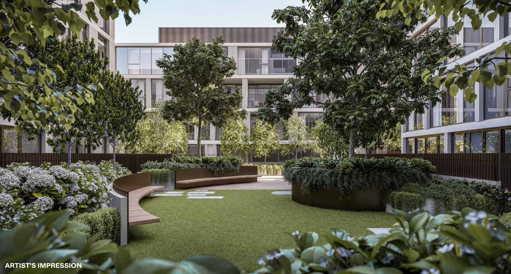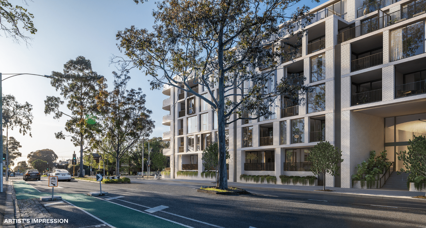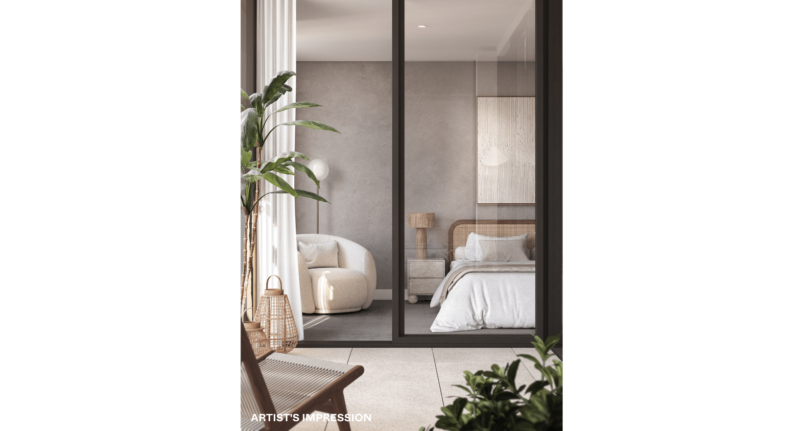 Artist's impression was produced prior to planning approval, statutory approval and commencement of construction and is subject to change. The information, image and artists' impression depicting interiors and exteriors are intended only as a guide and are not to be relied on as representative of the final product or the apartment type advertised. Architecture is indicative only and subject to change. Internal and external views are indicative only and subject to change. Photography correct as at time of publishing and does not represent any future development that may occur in the area. The information provided herein is believed to be correct as at April 2025.