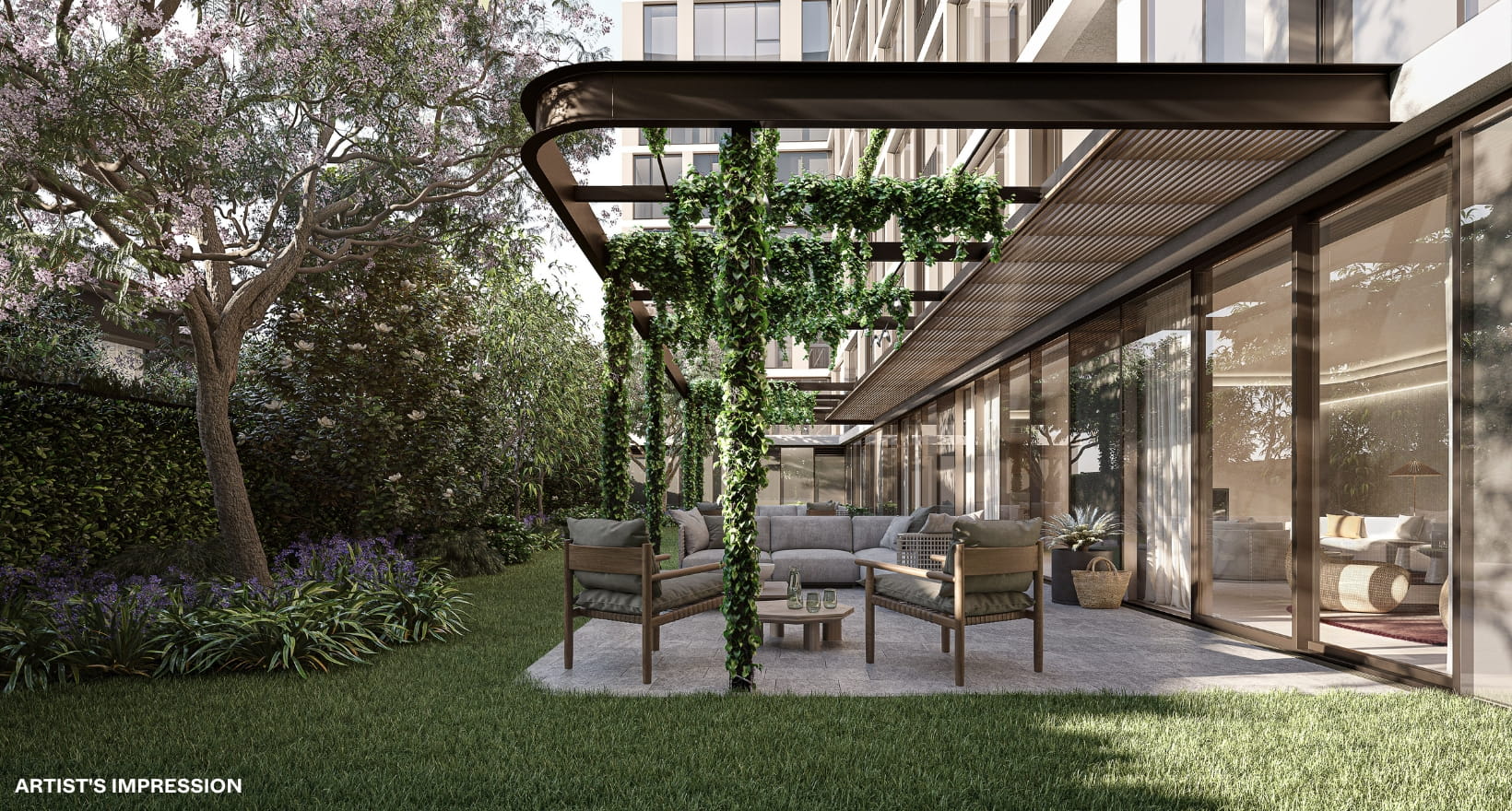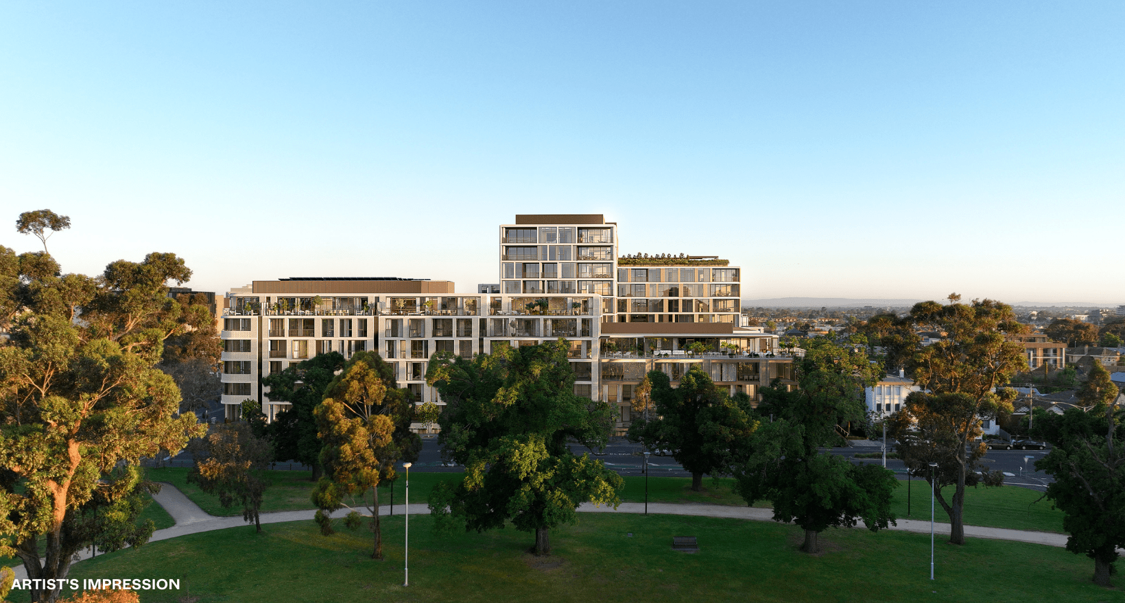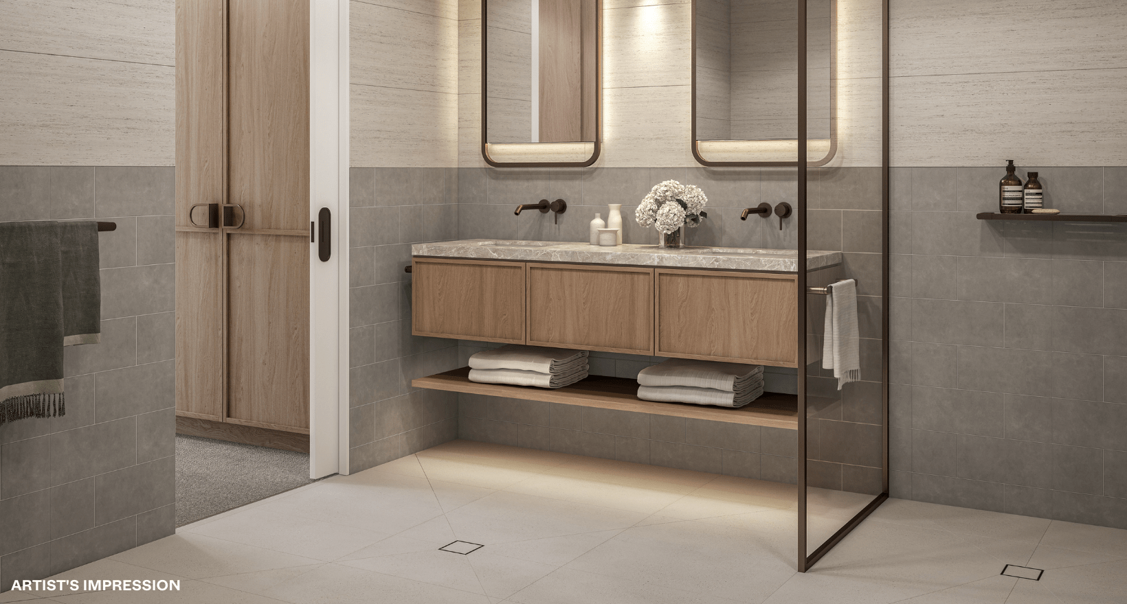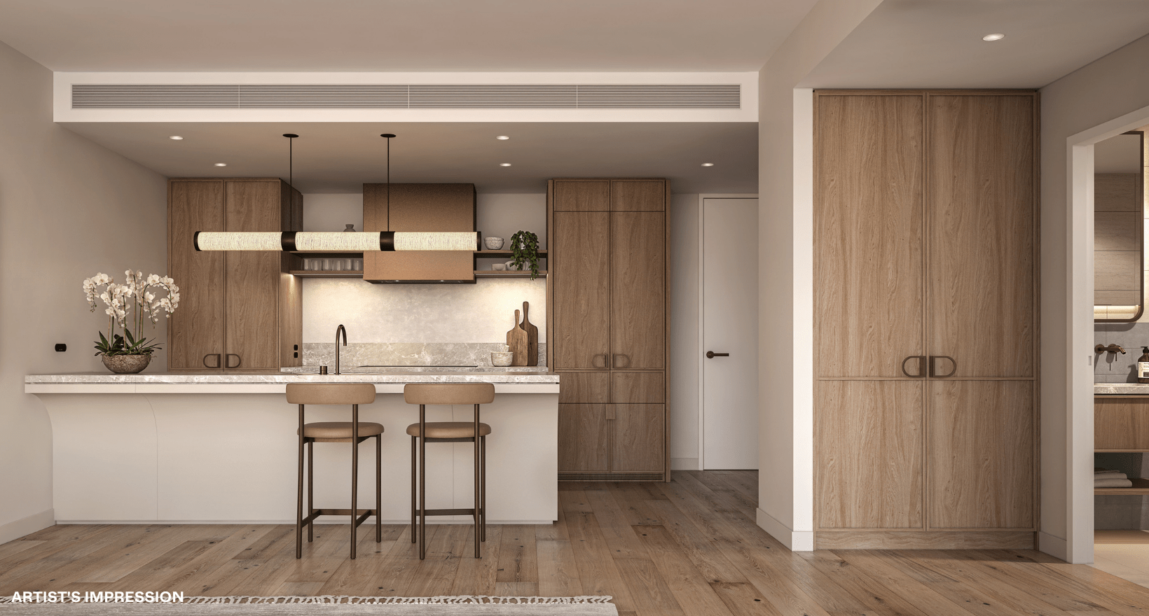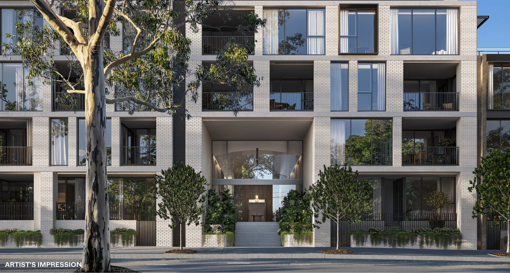 Artist's impression was produced prior to planning approval, statutory approval and commencement of construction and is subject to change. The information, image and artists' impression depicting interiors and exteriors are intended only as a guide and are not to be relied on as representative of the final product or the apartment type advertised. Architecture is indicative only and subject to change. Internal and external views are indicative only and subject to change. Photography correct as at time of publishing and does not represent any future development that may occur in the area. The information provided herein is believed to be correct as at April 2025.