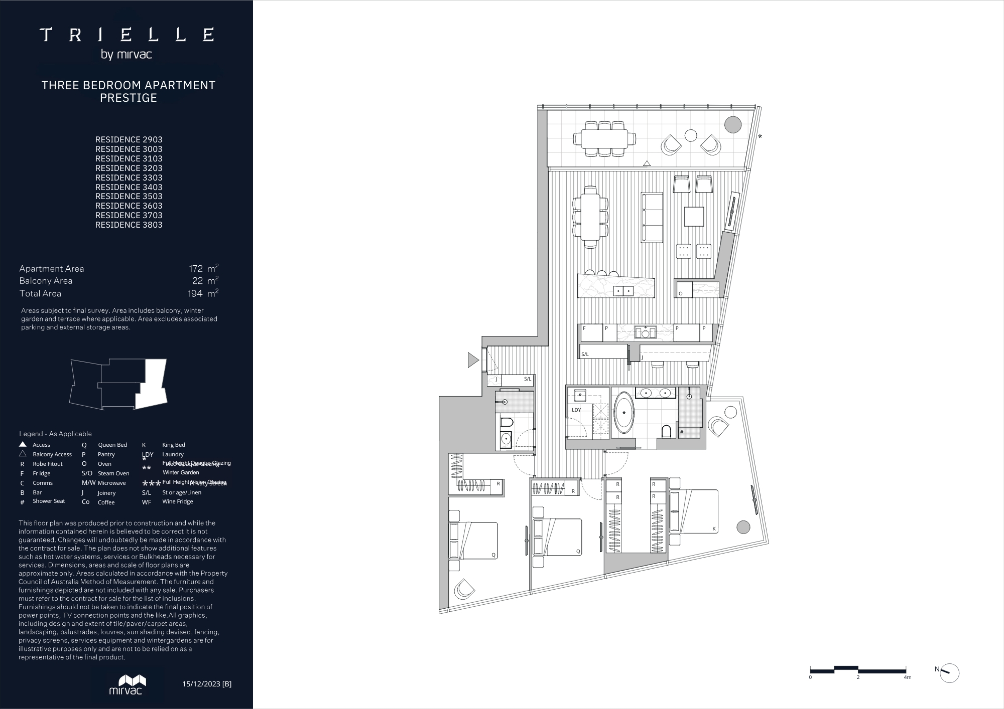 With 172 square metres of indoor living and a 22 square metre balcony, apartment features include: