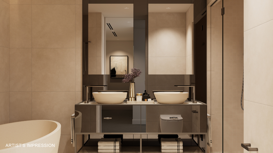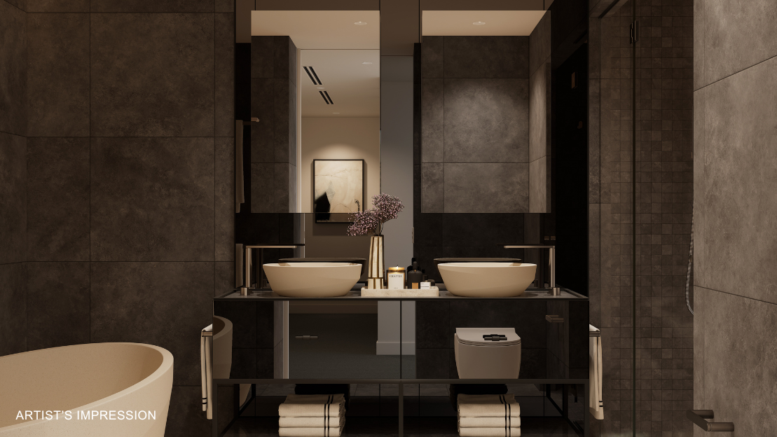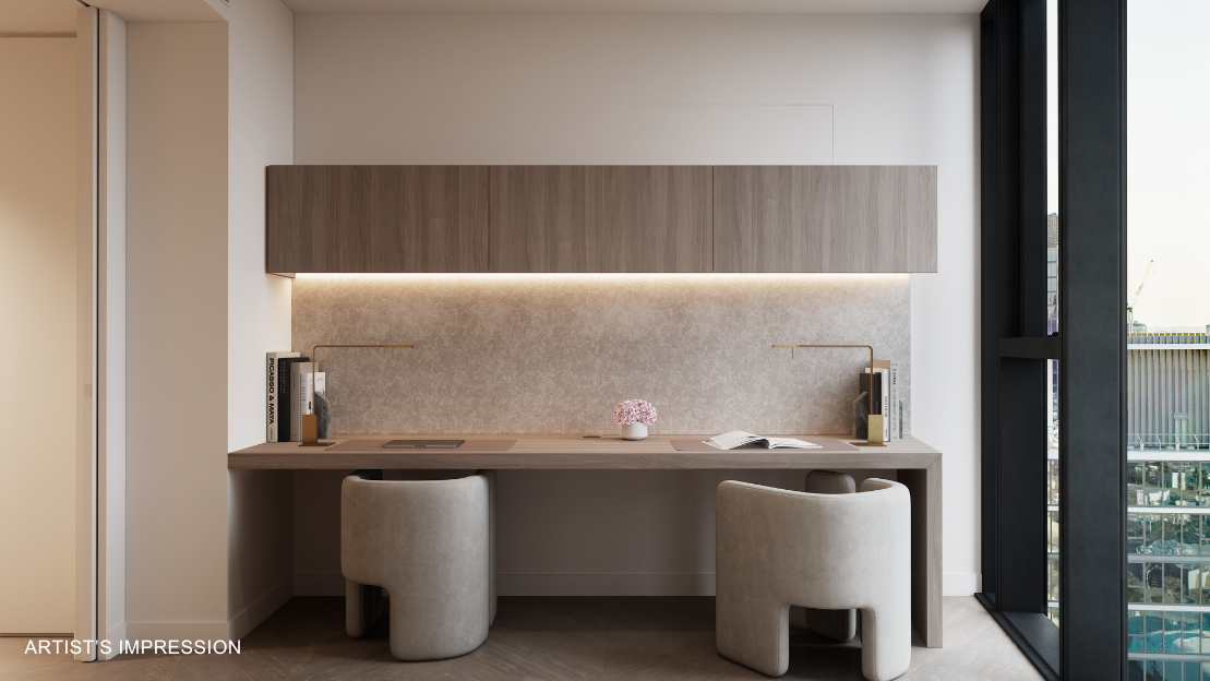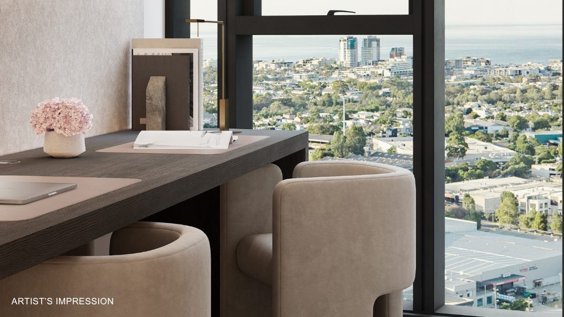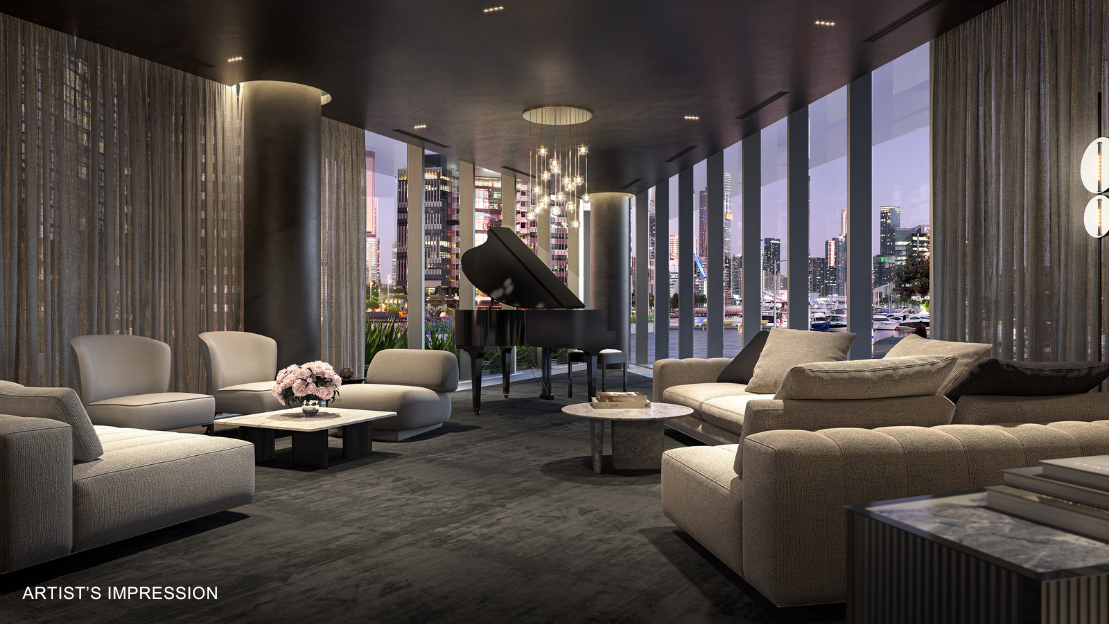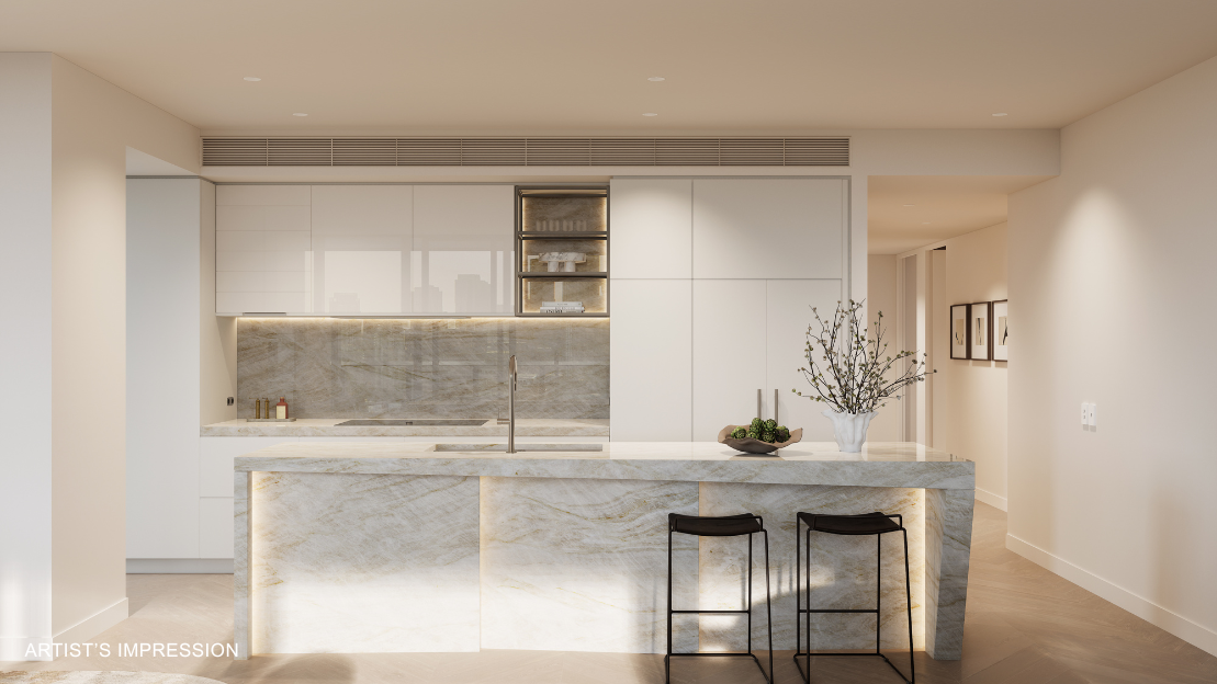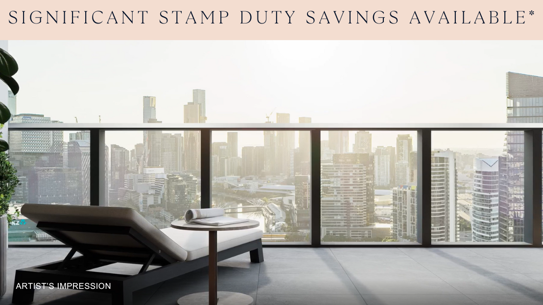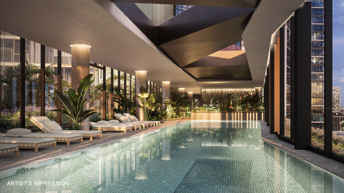 Artist's impression was produced prior to planning approval, statutory approval and commencement of construction and is subject to change. The information, image and artists' impression depicting interiors and exteriors are intended only as a guide and are not to be relied on as representative of the final product or the apartment type advertised. Furnishings are not included. Views depicted in this property listing are indicative only at approximately Level 31 and should not be relied upon as representative of any final views from any particular apartment. Purchasers should make their own enquiries as to the impact of any proposed surrounding development on any views. Photography is correct as at August 2022 and does not represent any future development that may occur in the area. The information provided herein is believed to be correct as at March 2025.