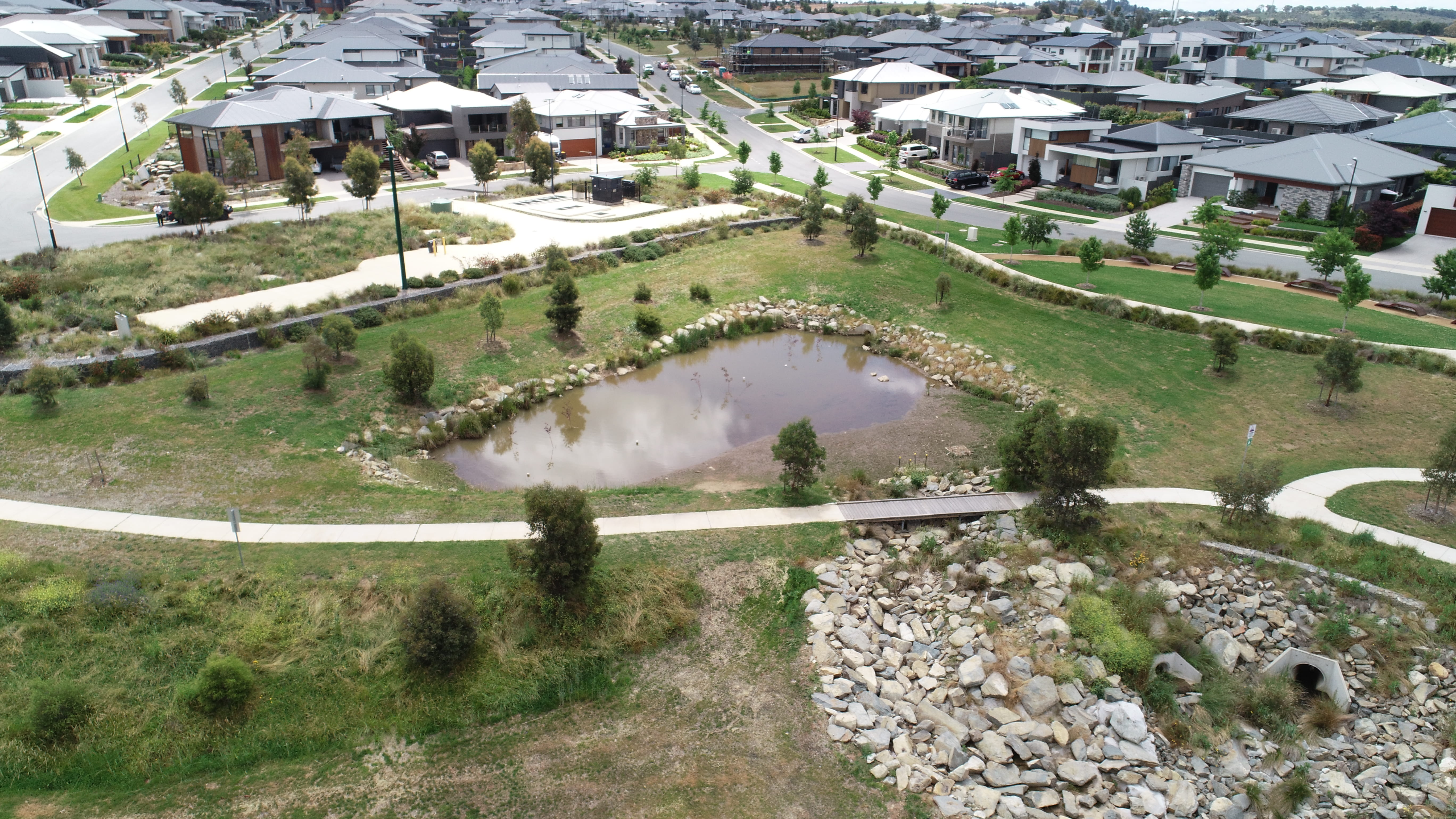 Harcrest is a 56 hectare masterplanned community in Wantirna South, which was completed by Mirvac in 2015. Early in the design phase, the project team – having seen the impacts of drought on other projects in Victoria (particularly in regard to landscaping) – identified an opportunity to integrate a highly efficient stormwater capture system to irrigate the estate’s public open spaces.